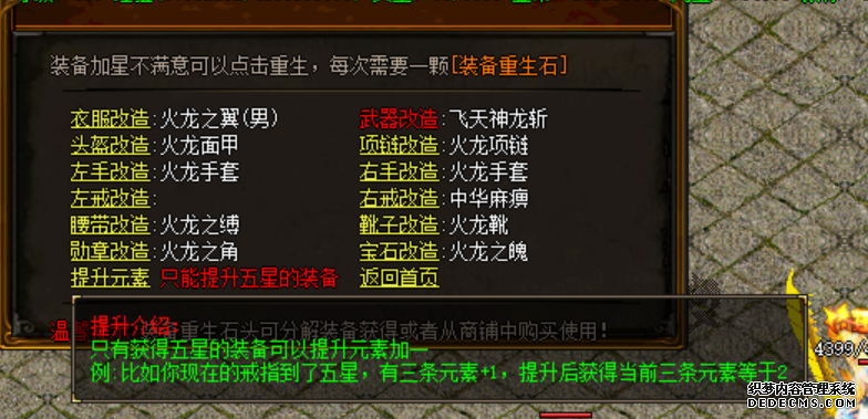 为了增加游戏的各种玩法,增加游戏现有的五星装备元素属性进行提升